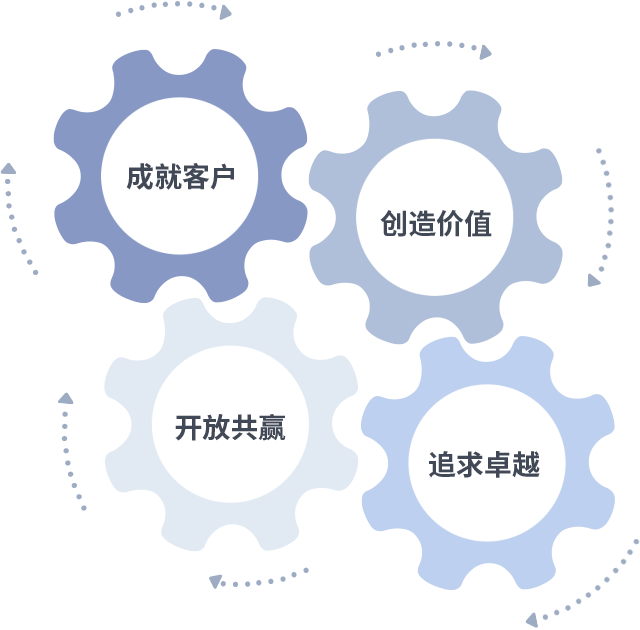 成就客户是一切决策的出发点,创造价值是衡量所有工作的标准,追求卓越是BG大游做事做人的态度,开放共赢是BG大游的格局也是最终的结果。价值观的齿轮环环相扣,推动着组织里的每个人不断向前。